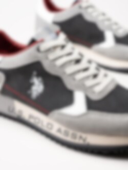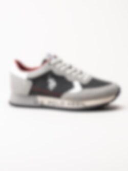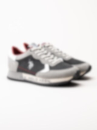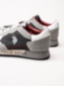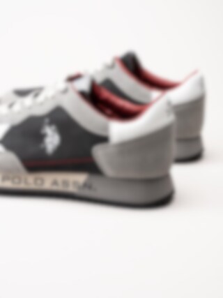Grå sneakers i mocka från US Polo. Partier i textil med en foder i textil och syntet. Innersula i textil. Yttersula i gummi. Memory-foam innersula. Extra skosnören i annan färg förljer med.