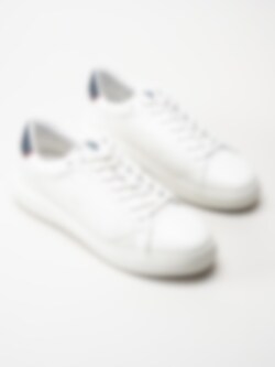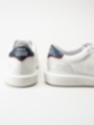 Vita sneakers i skinn från US Polo. Ett par sköna snörskor i en klassisk modell med en blå och orange parti baktill. Foder av textil och löstagbar innersula av skinn. Vit yttersula av syntet.