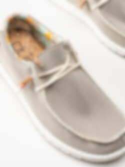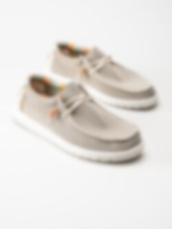 Beige snörskor i textil från Hey Dude. Wally är vår bästsäljare, designad för att vara din favoritsko vid alla tillfällen! En mängd utmärkta material gör att du kan bära dem året runt. Den innovativa designen, i kombination med vårt Flex & Fold-sulsystem, gör den till den lättaste och mest bekväma skon som finns på marknaden idag.