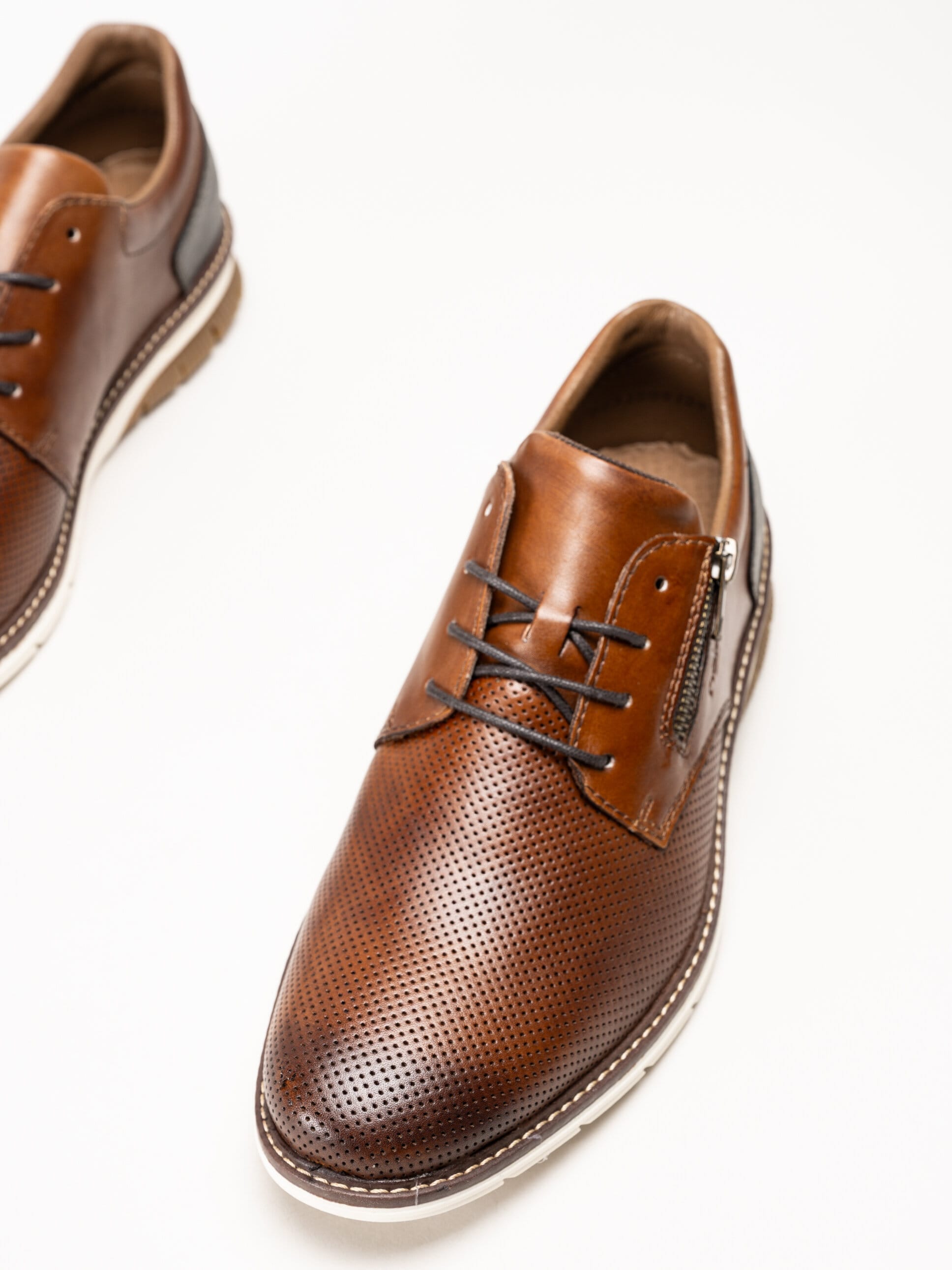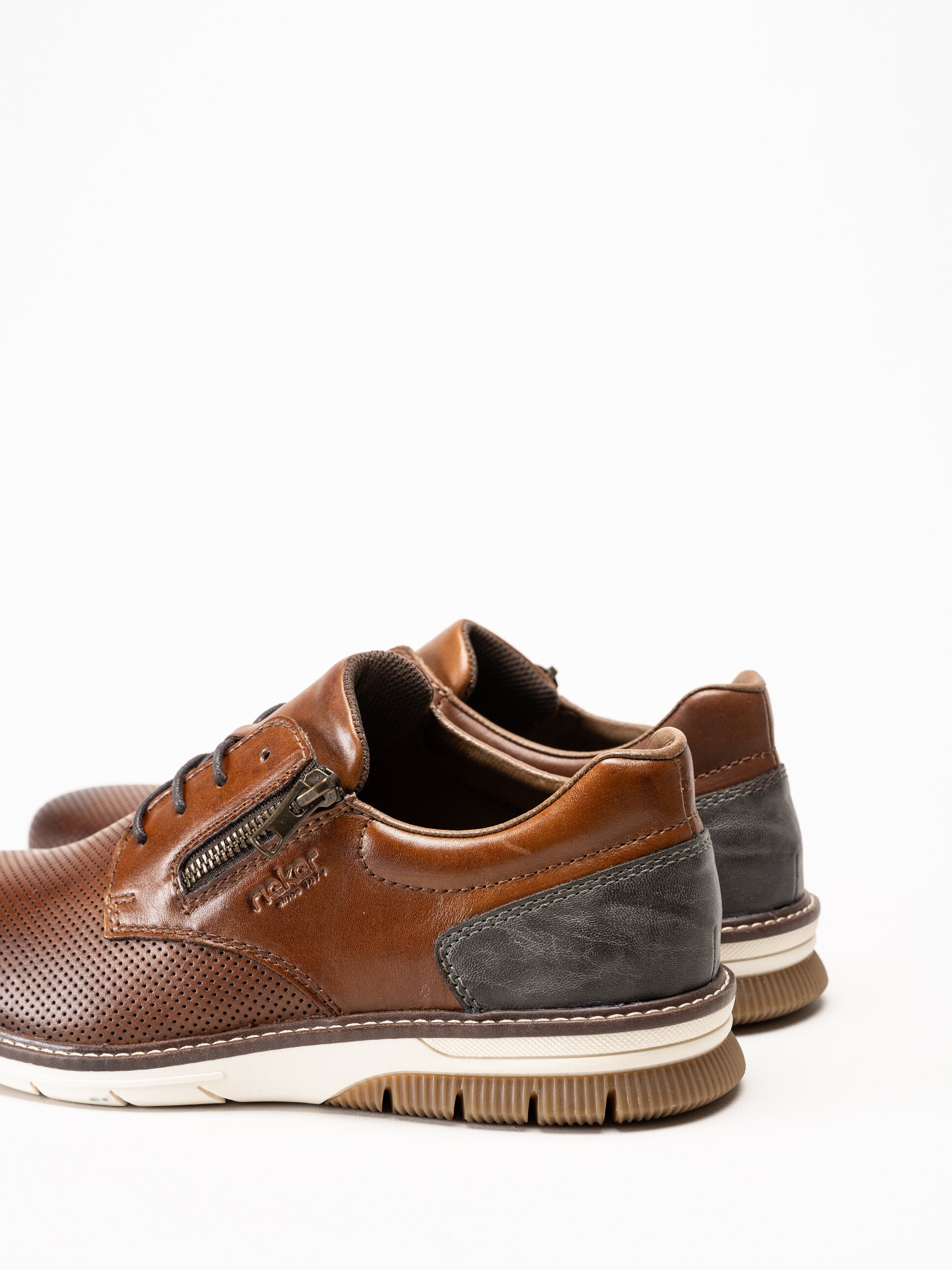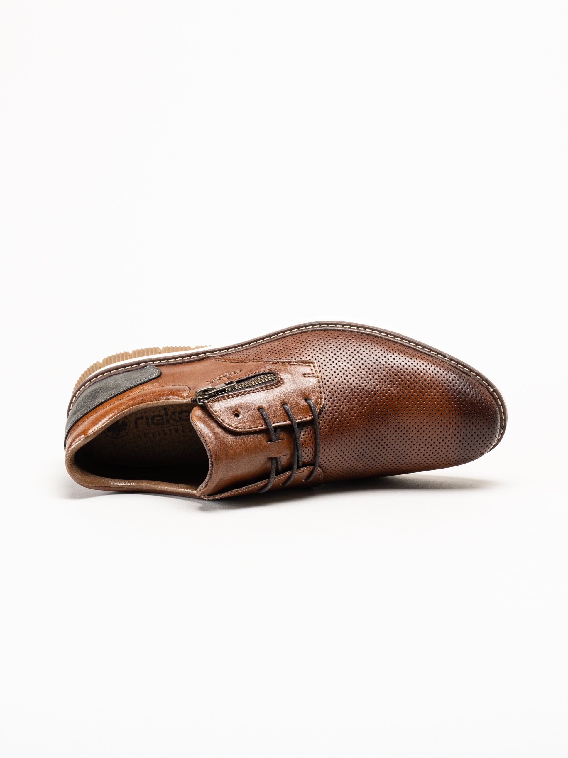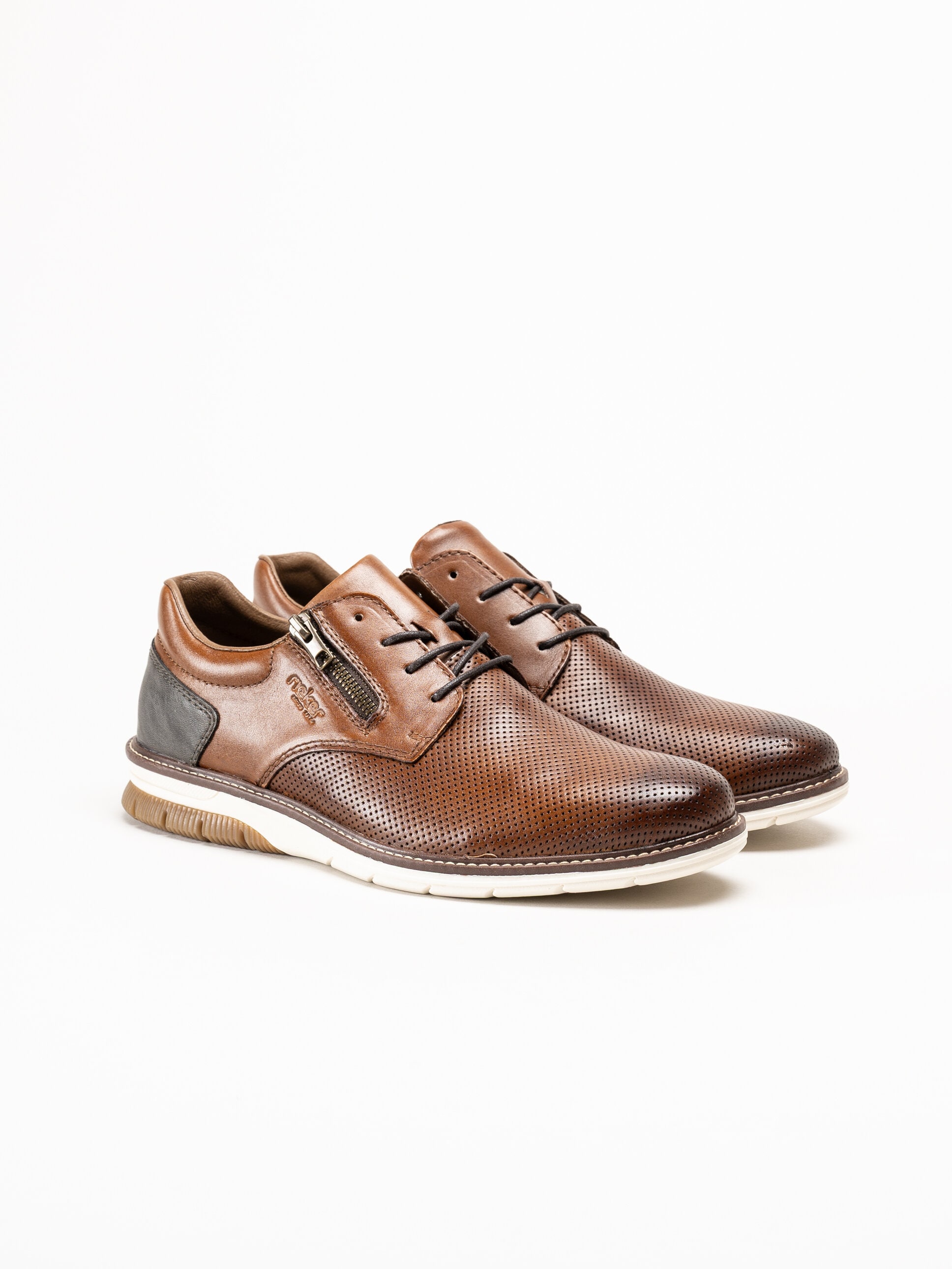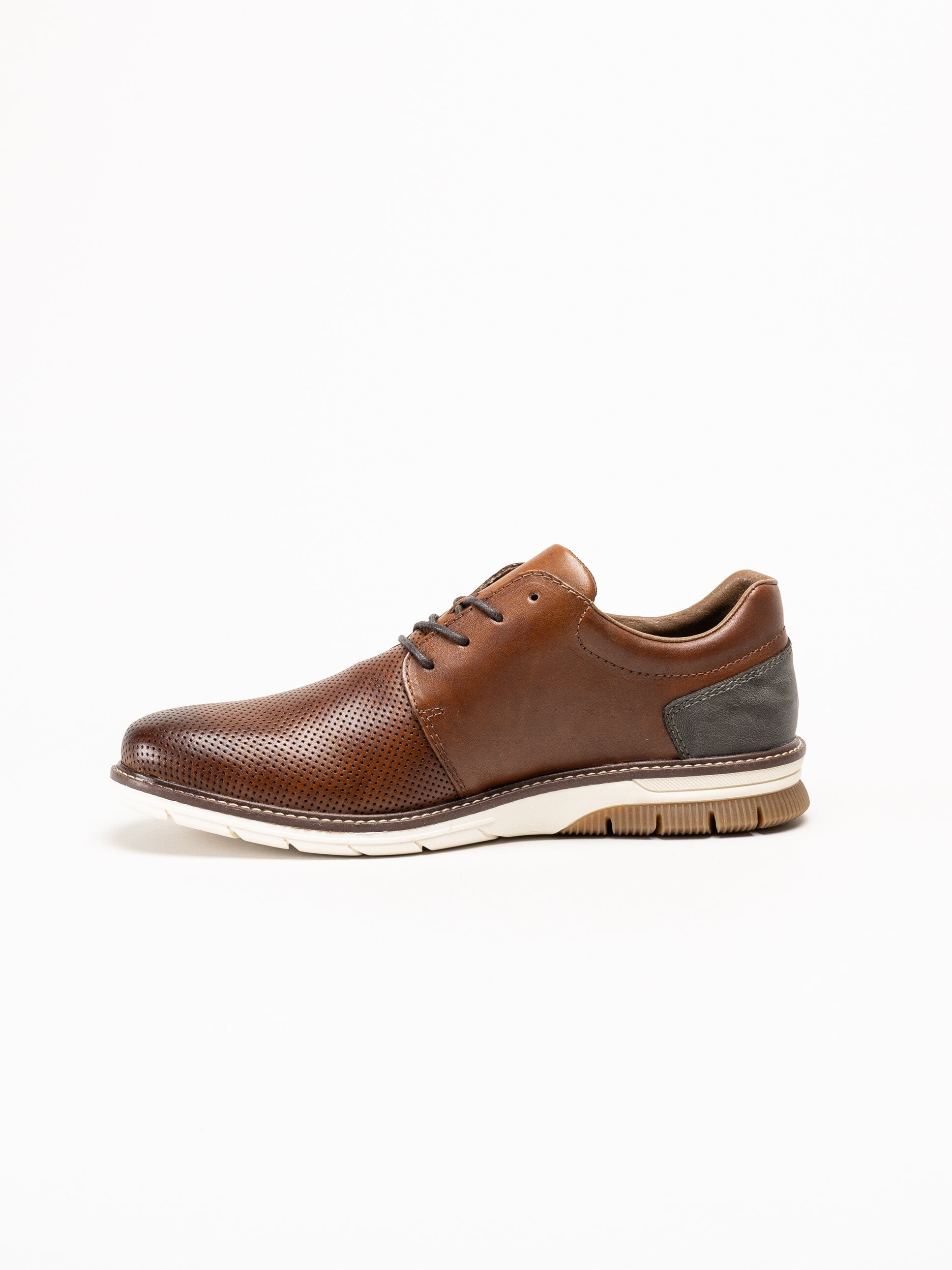 Bruna snörskor i skinn från Rieker i färgen Muskat. Skorna är tillverkade i mjukt och slitstarkt skinn som ger ett klassiskt och stilrent uttryck, med en tidlös design som passar både vardag och mer uppklädda tillfällen.