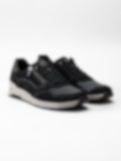 Svarta promenadskor Etienne tillverkade i nubuck från Waldläufer. Skorna har en extra bred läst.