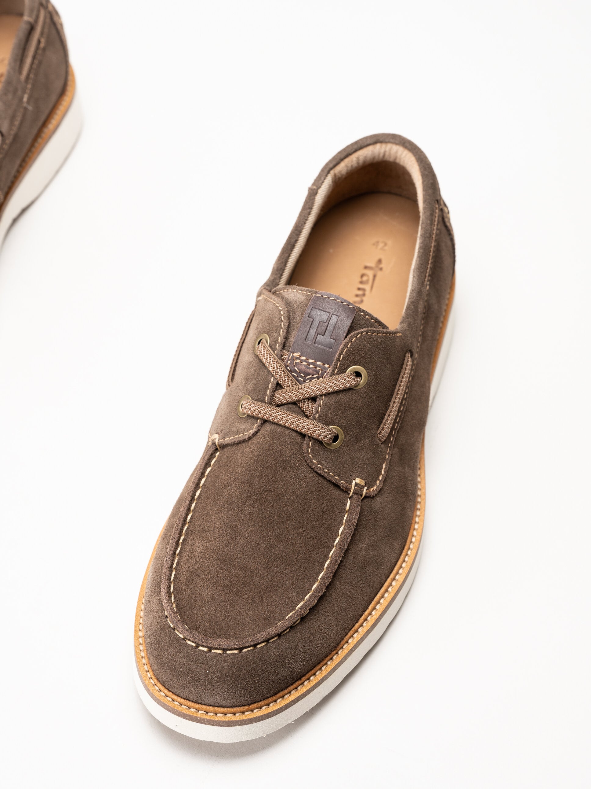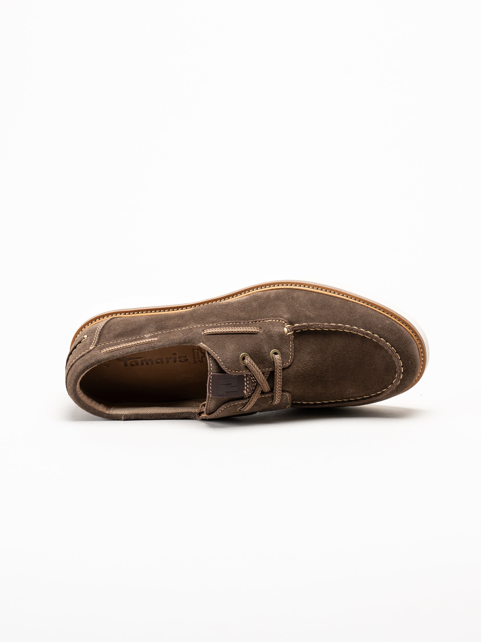 Mörkbruna seglarskor i mocka från Tamaris. Skorna är tillverkade i mjuk mocka som ger ett klassiskt och avslappnat uttryck, perfekt för en tidlös seglarstil som passar lika bra till vardag som till ledigare tillfällen.