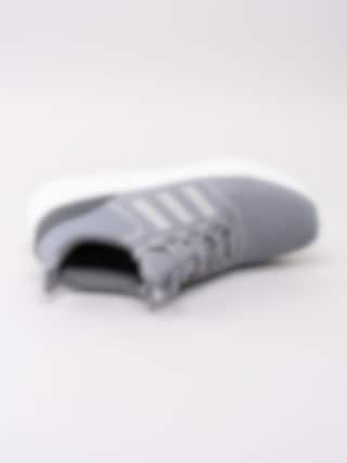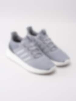 Grå sportskor Cloudfoam Ultimate från Adidas tillverkad i meshtyg. Dra-på modell för enkel på- och avtagning. Utrustad med Memory Foam innersula som formar sig efter foten och Cloudfoam sula för ökad komfort. Sömlösa 3 stripes på in- och utsidan i syntet. Textilflik med grå logga på plös. Grå snörning i polyester med 4 hål för att justera passform. Mörkgrå hälclip med präglad logga. Grått foder och löstagbar innersula i textil med sömlös logga. Sula med svarta prickar. Vit yttersula i syntet med randigt mönster och logga.