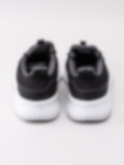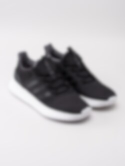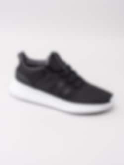 Svarta sportskor Cloudfoam Ultimate från Adidas tillverkad i meshtyg. Dra-på modell för enkel på- och avtagning. Utrustad med Memory Foam innersula som formar sig efter foten och Cloudfoam sula för ökad komfort. Sömlösa 3 stripes på in- och utsidan i syntet. Textilflik med grå logga på plös. Svart snörning i polyester med 4 hål för att justera passform. Svart hälclip med präglad logga. Mörkgrått foder och löstagbar innersula i textil med sömlös logga. Vit yttersula i syntet med randigt mönster och logga.