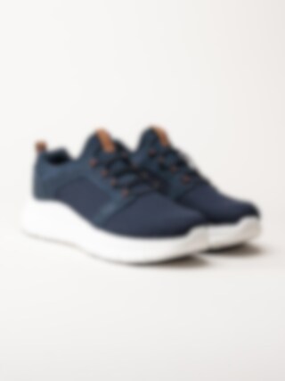 PoleCat - Arch New York - Mörkblå slip on skor i textil
