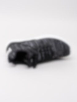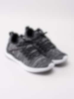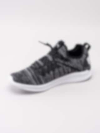 Svartmelerade sportskor Ignite flash evoKNIT från Puma tillverkad i stickad och lätt design med asymmetrisk snörning. Dra-på modell för dig som är på språng. Utrustad med Ignite mellansula med skumgummi för ökad komfort. Svartmelerad snörning med 10 hål för att justera passform. Hälla på plös med vit logga och bakskaft som hjälpmedel vid påtagning. Svart foder och innersula i textil med sömlös logga. Svart hälclip med präglad vit logga på bakparti. Vit yttersula i syntet med svarta partier och logga.