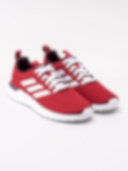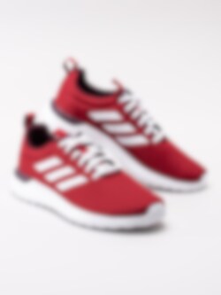 Röda sportskor Lite Racer CLN från Adidas tillverkade i meshtyg. Vita sömlösa 3 stripes i syntet på in- och utsidan som detalj. Broderad logga på plös. Utrustad med Ortholite innersula och Cloudfoam yttersula för ökad komfort. Vit snörning i polyester på 6 hål med röda öljetter som öppning. Hälla på bakskaft och plös som hjälpmedel vid påtagning. Mörkrött foder och innersula i textil med vit sömlös logga. Vit yttersula i syntet med rutigt mönster och logga.