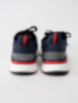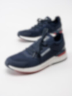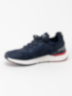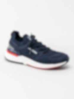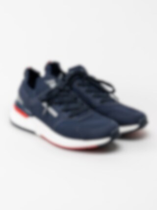 Mörkblå sneakers från Dockers by Gerli i textil med röda och vita detaljer.