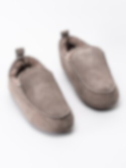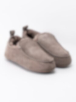 Axelda - Bruna slip on fårskinnstofflor i mocka