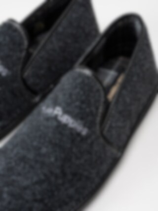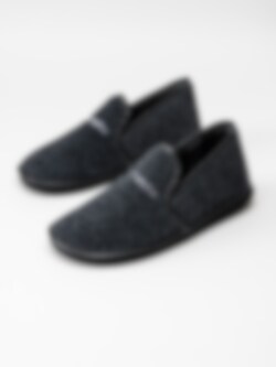 Grå slip on tofflor i textil från Hush Puppies. Broderad logga på ovandel med sydd syntetkant som detalj. Unna dig själv ett par eller var inte ge bort som present! Oavsett kommer du bli glad för dina nya tofflor från Hush Puppies.