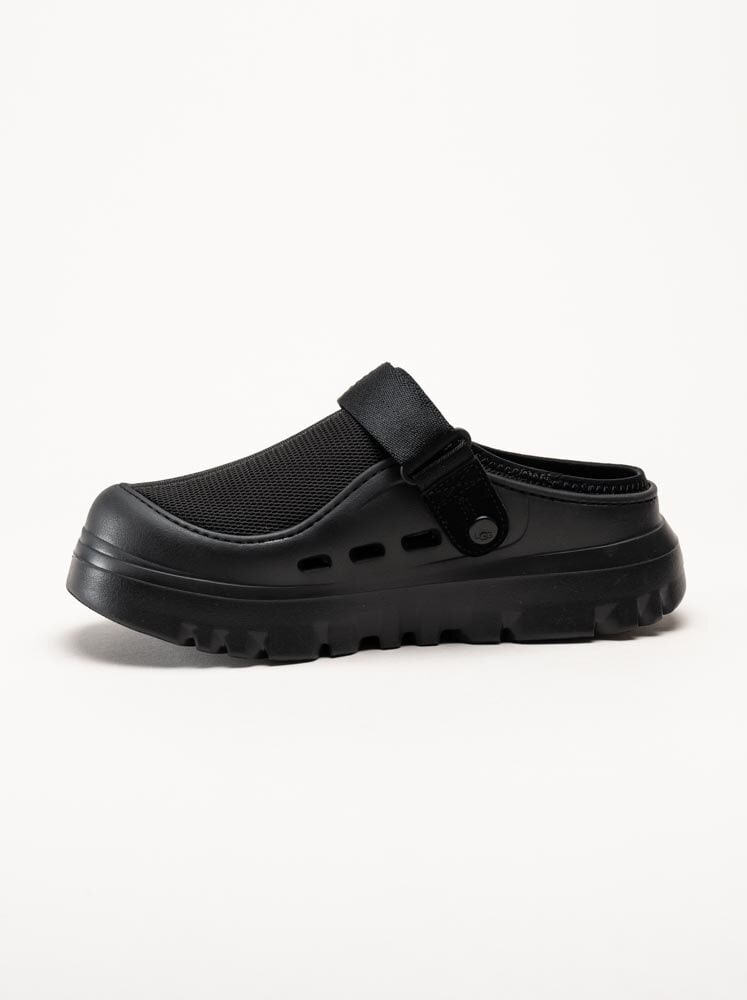 Svarta clogs M PeakMod från UGG, i färgen Black. En modern slip-in med en skulpterad form och volym i designen. Ovandel i luftig mesh, till största delen tillverkad av återvunnen polyester. Justerbar hälrem som kan vikas fram för flexibel användning. Bekväm PU-innersula med biobaserat innehåll och en ultralätt mellansula i sockerrörsbaserad EVA. Mjuk textil på insidan och en lätt, flockad yttersula som ger bra grepp. Perfekta clogs för en avslappnad och trendig vardagsstil.
