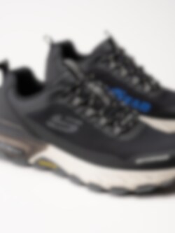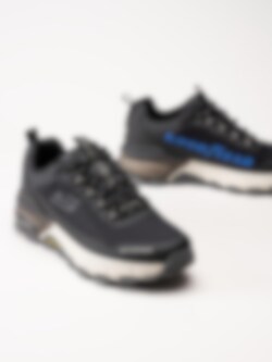 Svarta vattentäta sneakers från Skechers. Ut i spåren med sportig och säker stil i Skechers TR Ultra - Embargo sko. Ovandel i helt vattentätt vävt meshtyg och syntetmaterial på en promenad- och vandringssneaker med snörning samt stötdämpande mellansula och Air-Cooled Memory Foam-innersula.