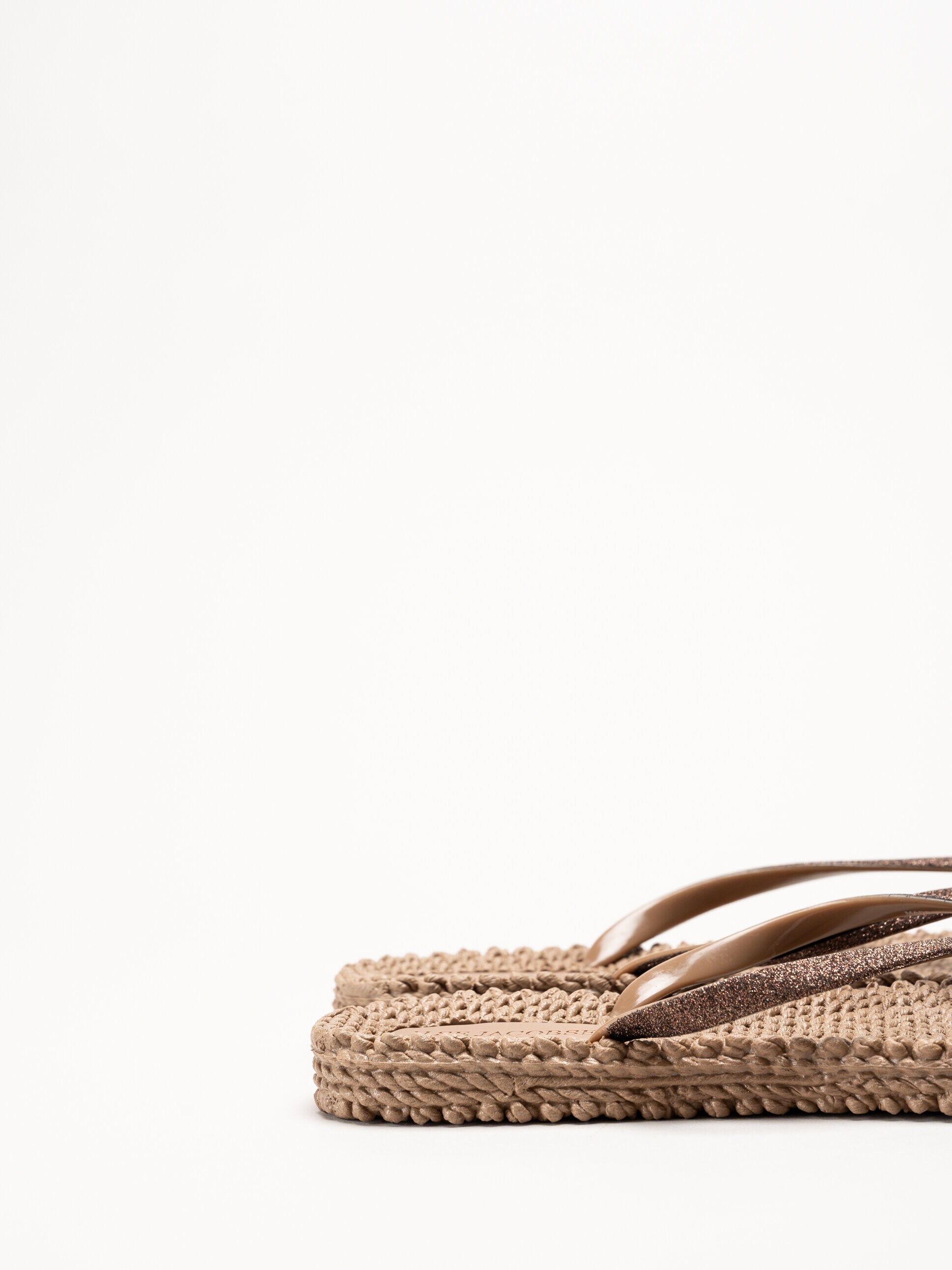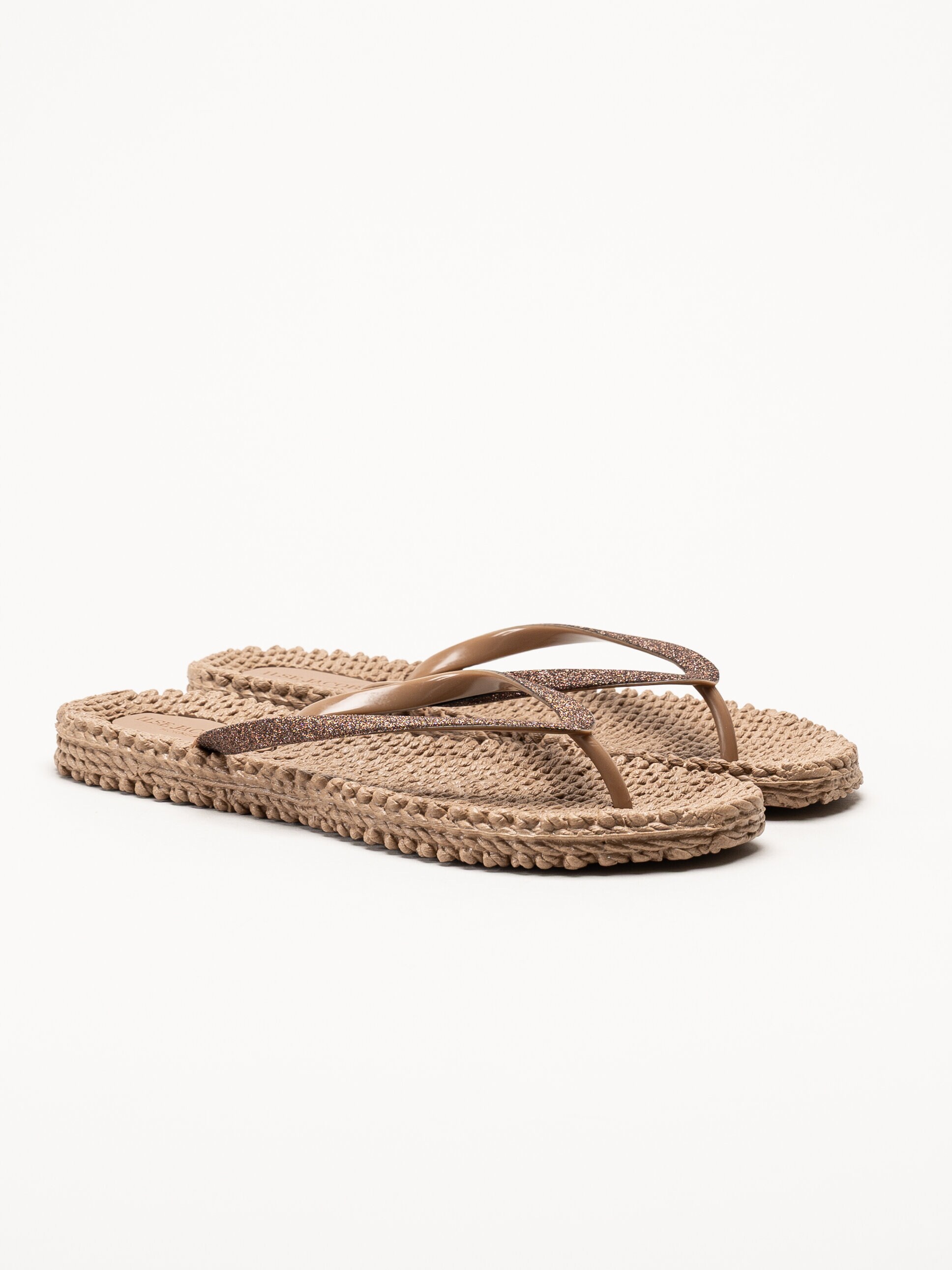 Bruna flip flops Cheerful01 från Ilse Jacobsen i färgen Mocca med en somrig design. Modellen har en glittrande rem som ger ett elegant och iögonfallande uttryck.