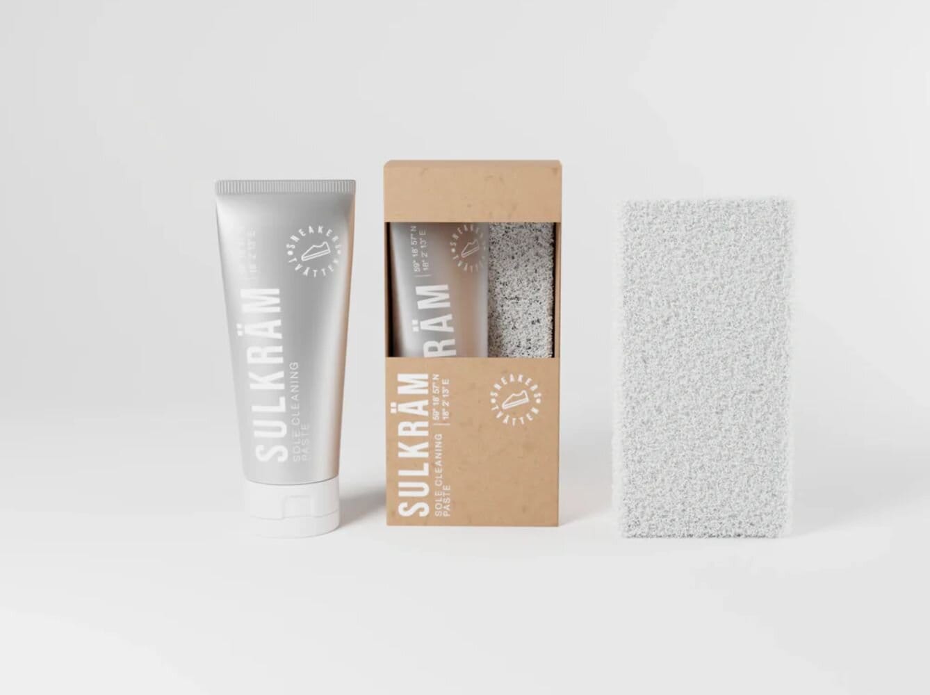 Använd en rengöringsprodukt anpassad för gummi och sula tillsammans med en grov borste alternativt en rengöringssvamp. Arbeta metodiskt längs hela sulkanten och torka av med en fuktig trasa. Regelbunden rengöring av sulorna gör stor skillnad för helhetsintrycket och gör att skorna ser betydligt fräschare ut.