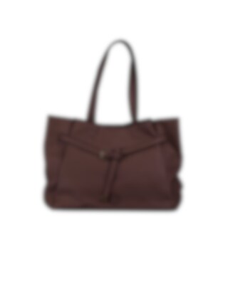 Mörkbrun Axelväska med dekorativ knut Brown från NYPD. Handväska från NYPD i ett mjukt material med fin struktur. Modellen kan bäras både i handen eller över axeln tack vare de två något längre, platta handtagen. Framsidan pryds av en dekorativ detalj utformad som ett skärp med spänne knutet i en knut, vilket ger väskan ett stilfullt och genomtänkt uttryck.