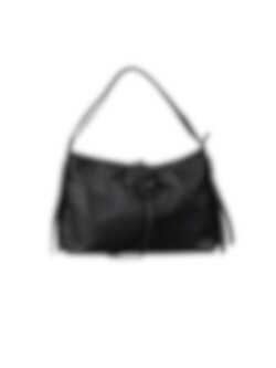 Svart Axelväska med ringdekor Black från NYPD. Helsvart väska från NYPD i mjuk PU med fin struktur. Modellen har dubbla, lätt justerbara remmar som löper runt hela väskan och ger ett stilrent uttryck. På baksidan finns tunna remmar som avslutas i en större ring där två smala remmar bildar en dekorativ knut som faller löst över huvudfacket.