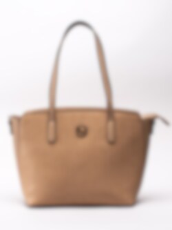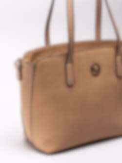 Beige handväska från NYPD tillverkad i veganskt läder med karaktär. Klassisk handväska med två beige remmar som handtag. Stilren väska med smyckeslogga på framsidan. Komplettera din outfit och få plats med dina vardagliga ting. Ytterfack med dragkedja på baksidan där du kan lägga saker du behöver komma åt snabbt. Textilfodrad med tre fack varav ett kan förslutas med dragkedja. Beige dragkedja som löpare i metall som öppning och stängning.