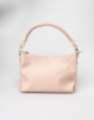 Rosa handväska från Ulrika med axelband samt flätad rem.