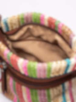 Brun och rosa flerfärgad axelremsväska Straw från Ulrika Design. Liten väska i randigt och flerfärgat stråmaterial. Brun axelrem i syntetskinn som är justerbar. Ytterfack med dragkedja på baksidan där du kan lägga saker du behöver komma åt snabbt. Huvudfack som försluts med dragkedja. Inuti finns en innerficka som försluts med dragkedja och ett mobilfack så du enkelt kan organisera i din väska.