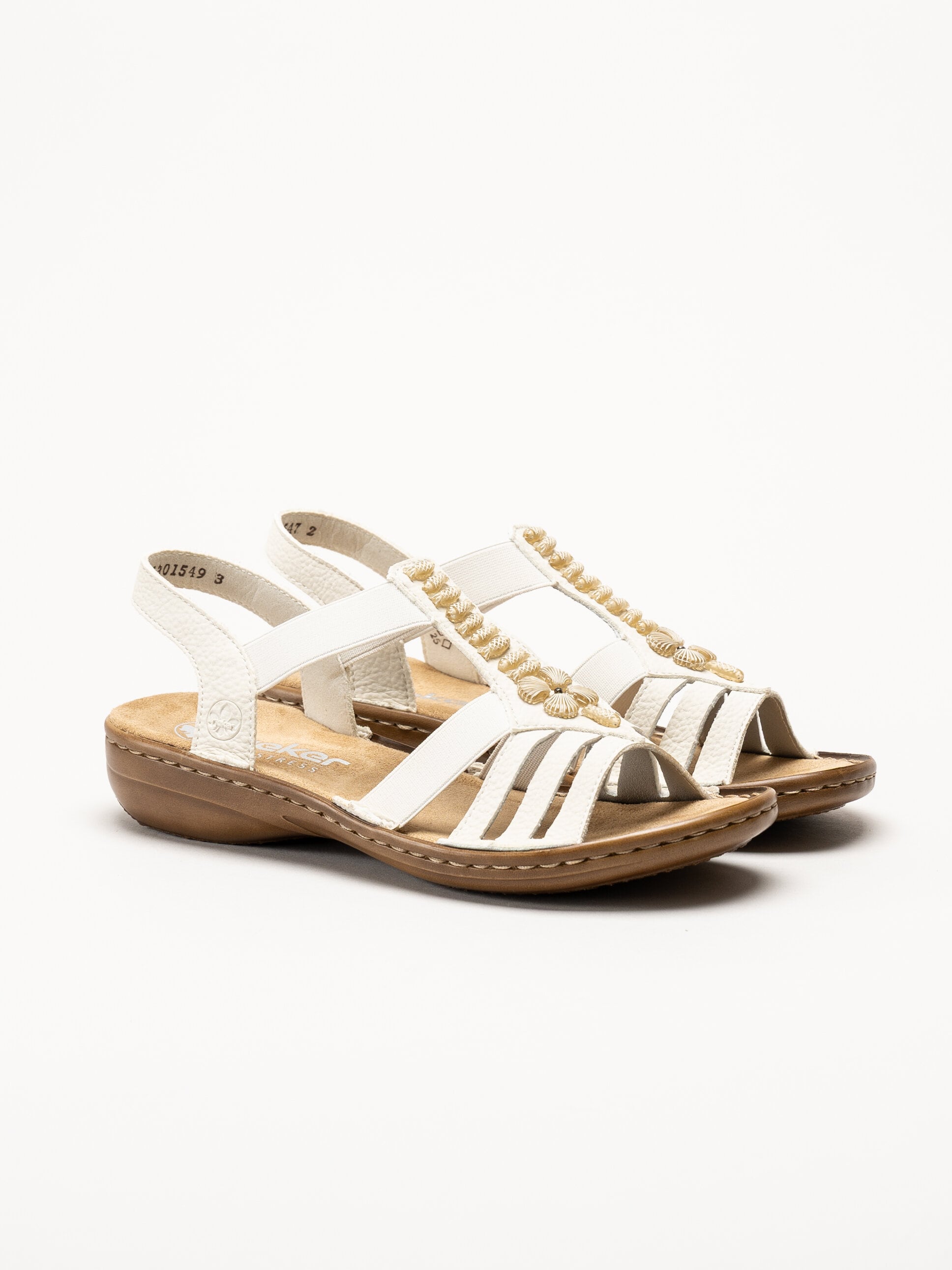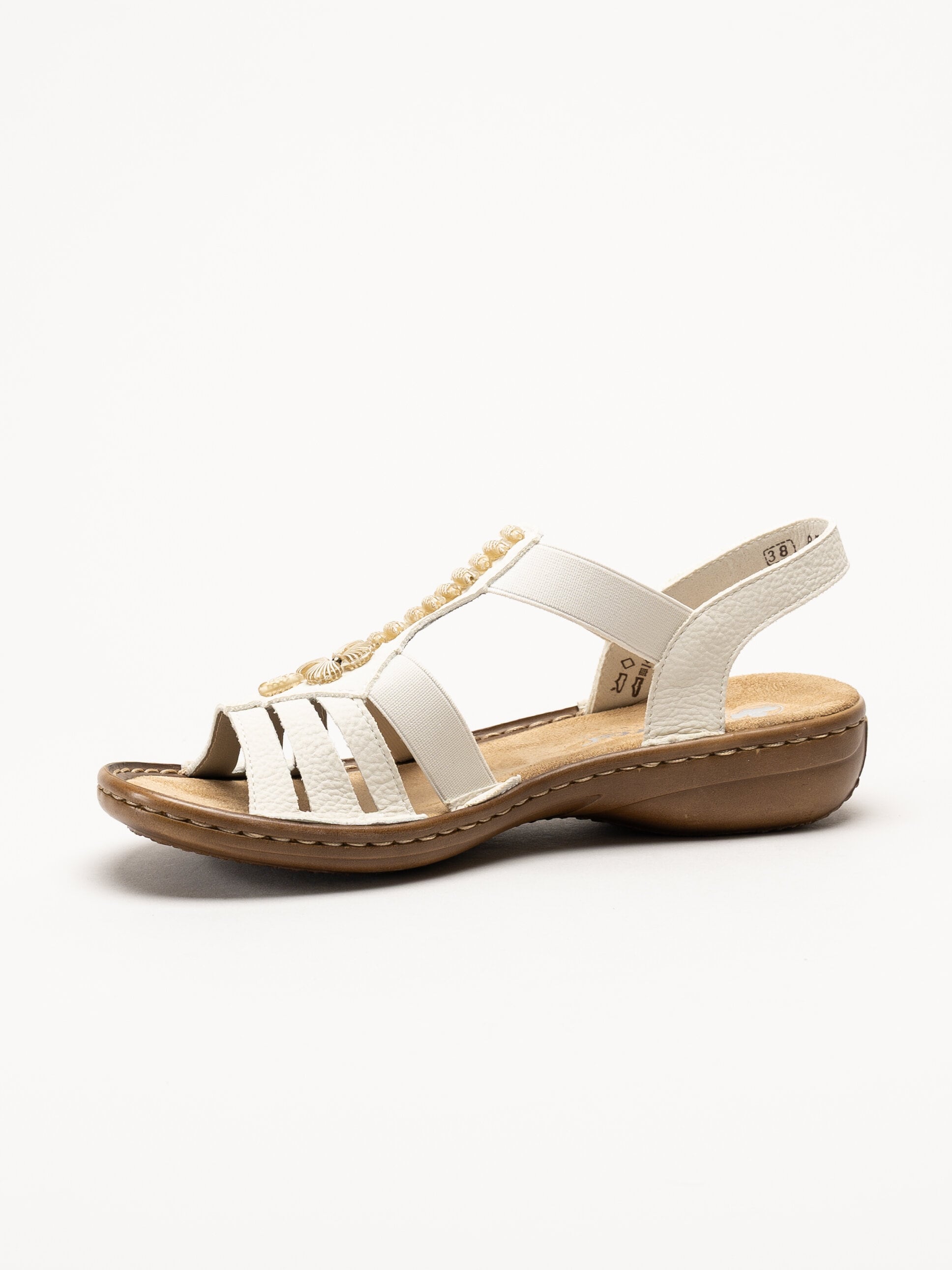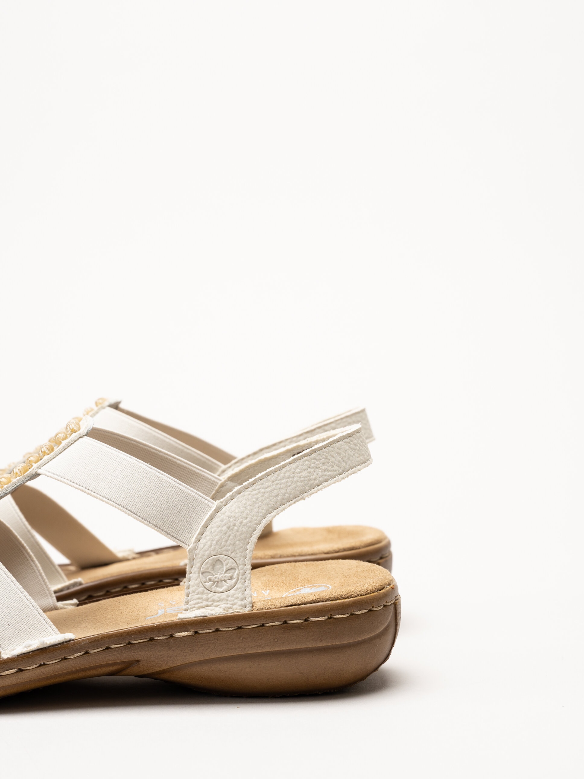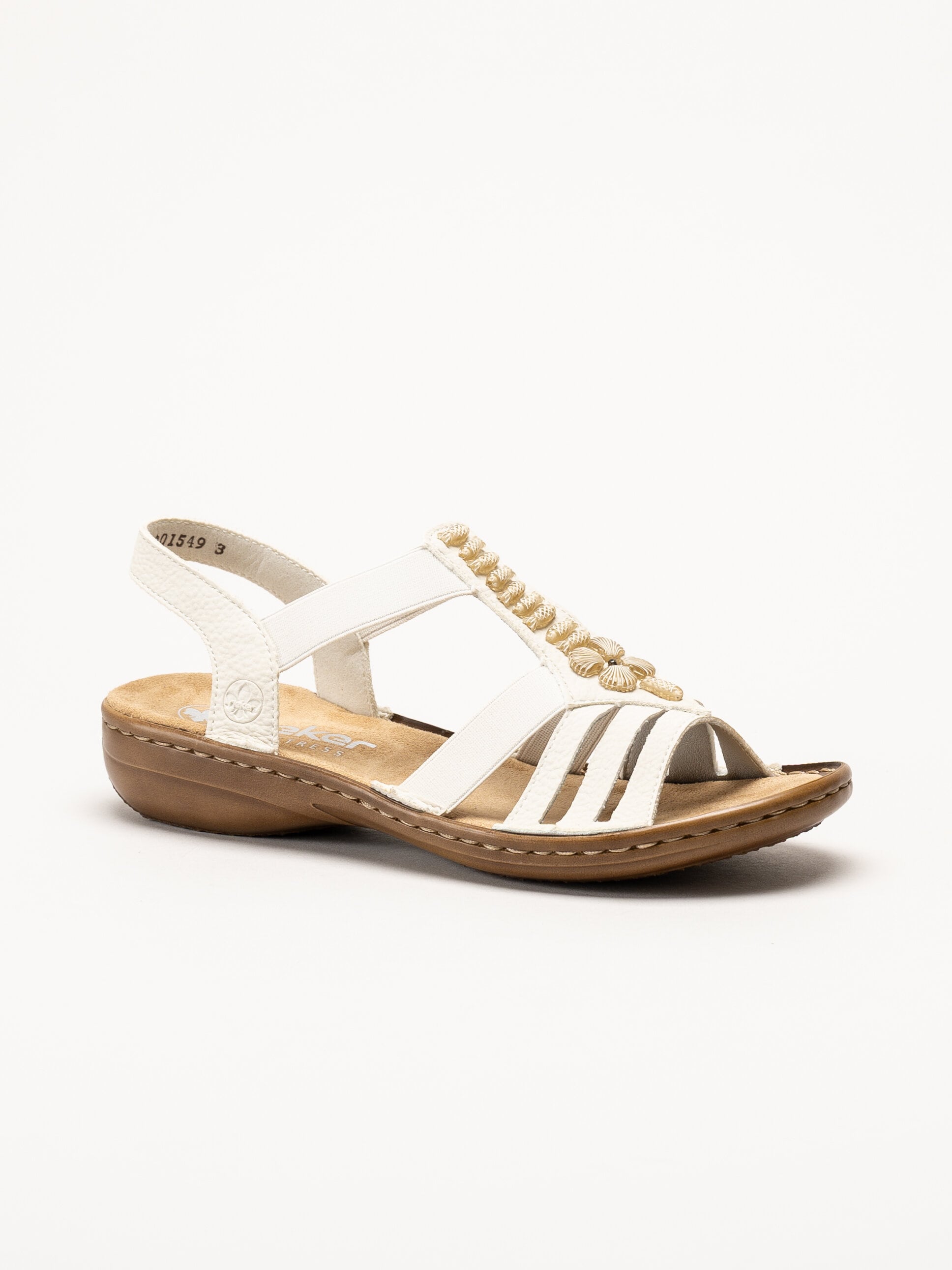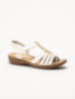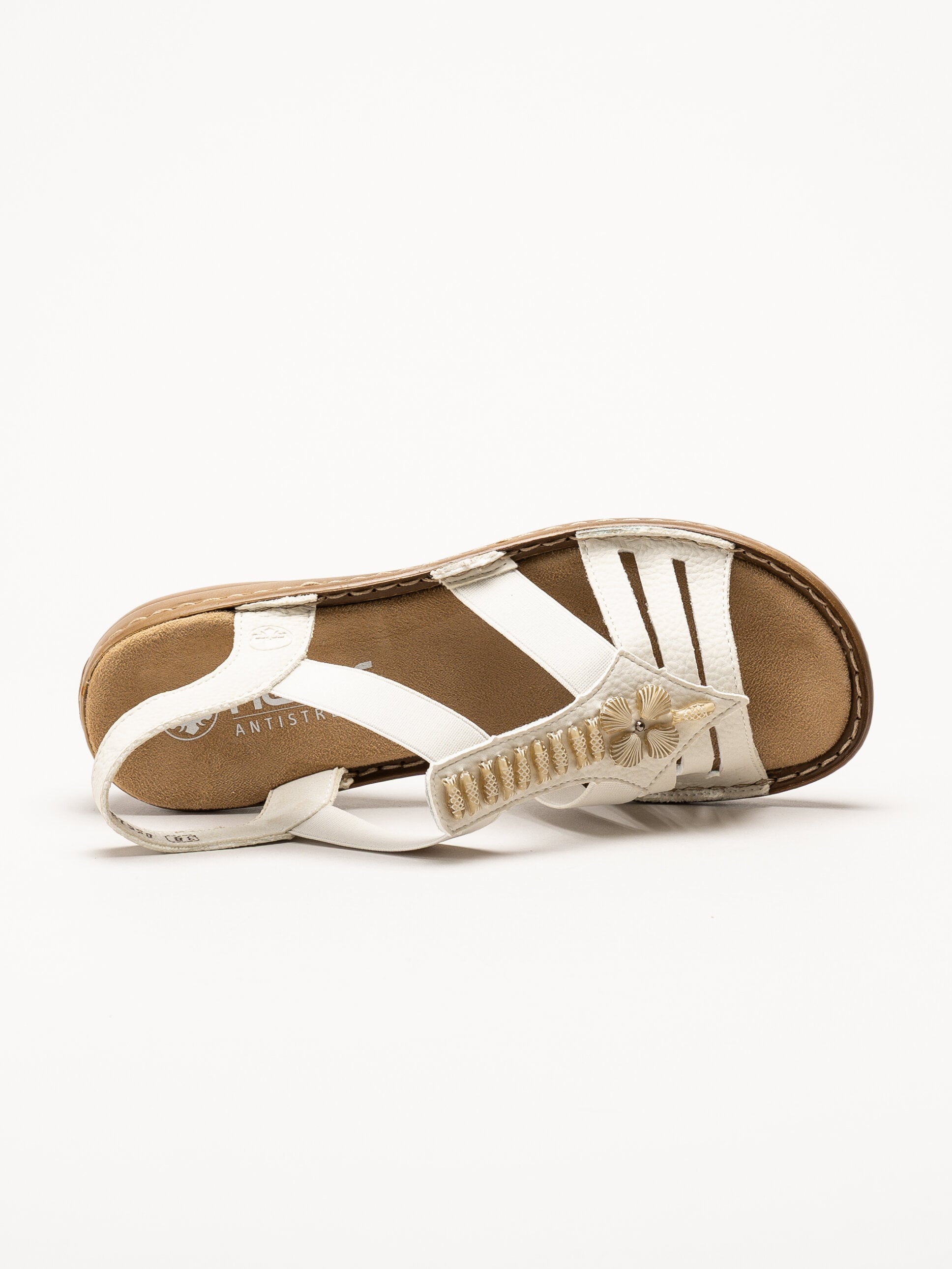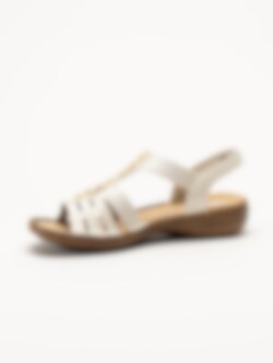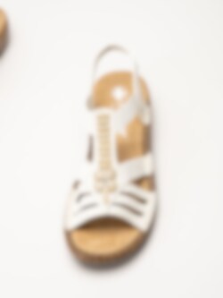 Offwhite sandaler från Rieker med en stilren och dekorativ design. Ovandelen är tillverkad i en kombination av syntet och textil som ger en lätt och följsam känsla.