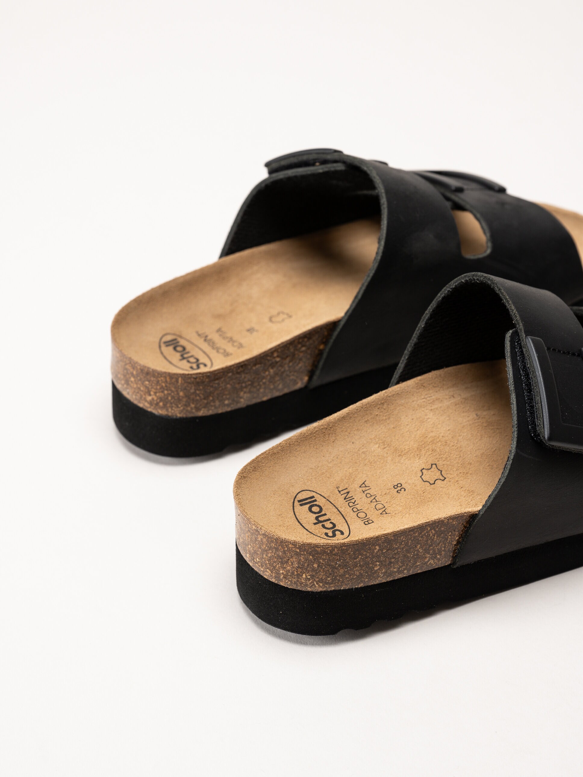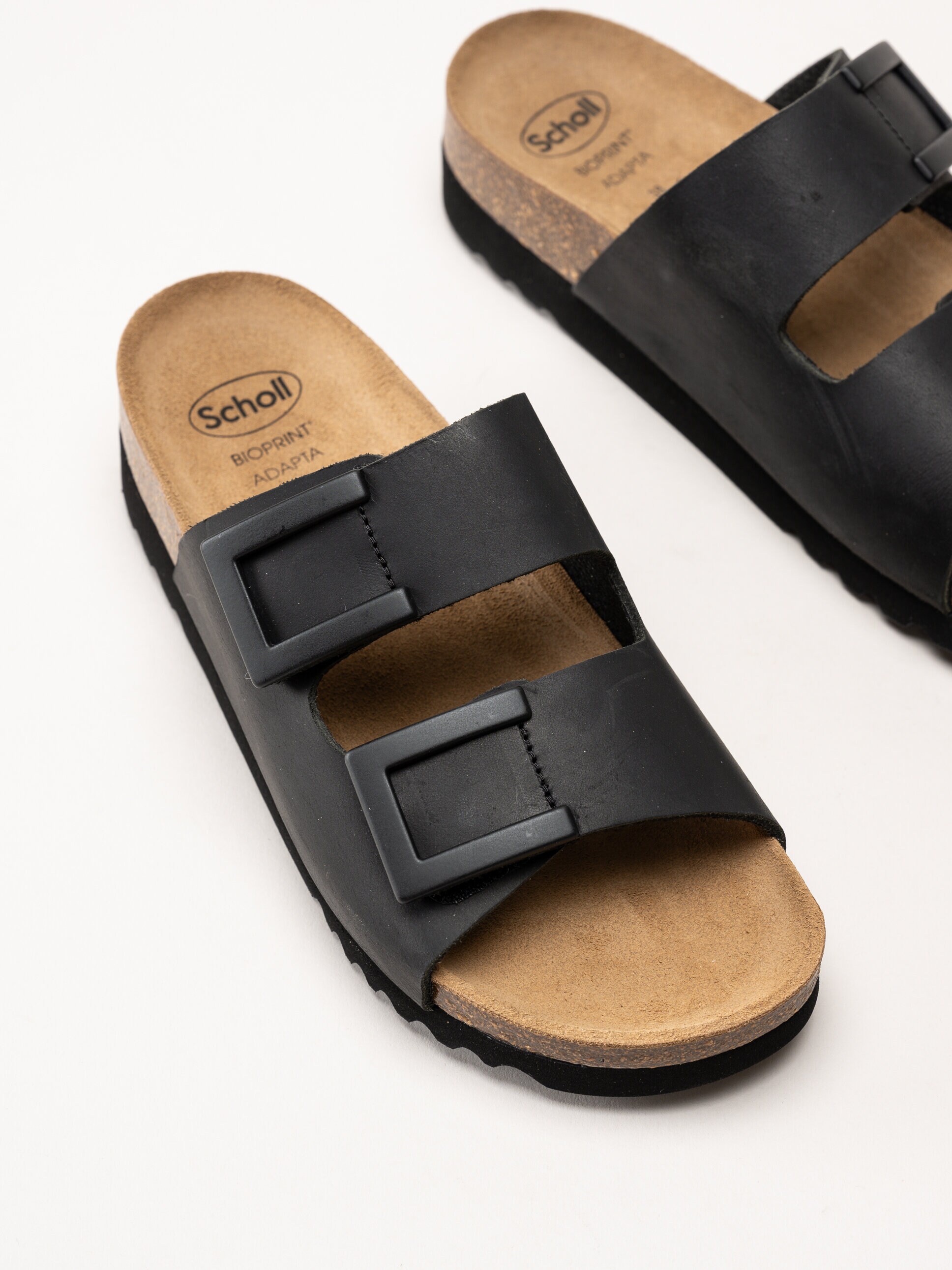 Svarta slip in sandaler i oljat skinn Monterey 2 Black från Scholl. Upplev en ny nivå av komfort med vår stilrena sandal både för inom- och utomhus bruk, utrustad med den innovativa Bioprint® Adapt-teknologin för optimalt stöd hela dagen. Den anatomiskt utformade fotbädden följer fotens naturliga form och anpassar sig efter dina unika konturer, vilket ger en stabil, avlastande känsla vid varje steg.