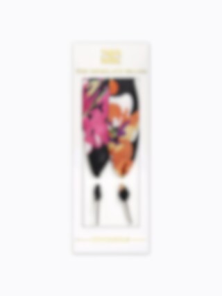 The Shoelace Brand - Flower Black Scarf 120cm - Blommönstrade skoband i siden