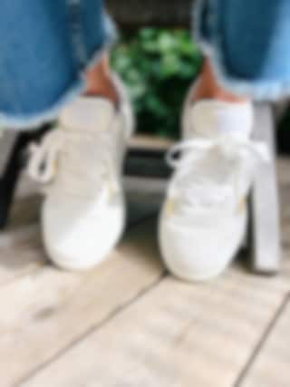 The Shoelace Brand - White Silk 120cm - Vita skoband i satin med guldtipp