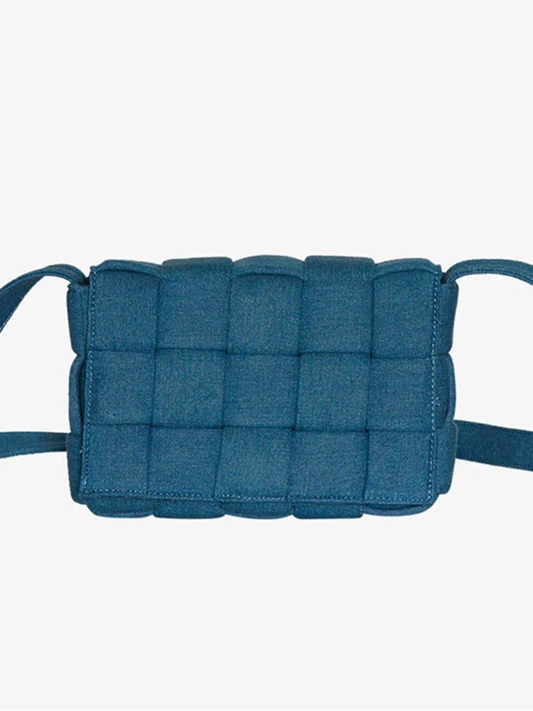 Noella - Brick Denim - Blå flätad axelremsväska i jeanstyg