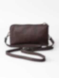 Brun axelremsväska i skinnimitation från NYPD. Insida i textil med två fack, en innerficka med dragkedja samt tre kortfack.