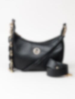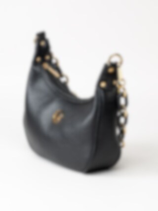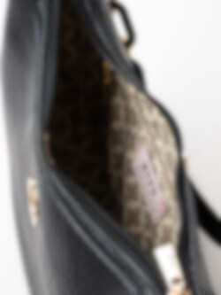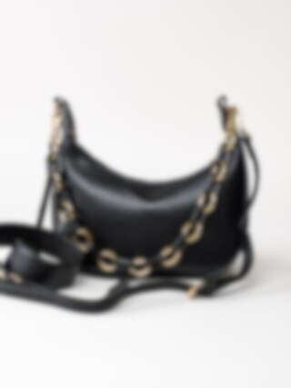 Svart handväska med dekorkedja från NYPD. Snygg och praktisk väska med utbytbara axelremmar och foder i textil. En stor ficka, en innerficka med dragkedja, samt två innerfack.