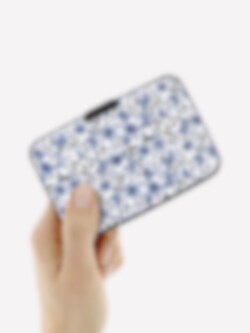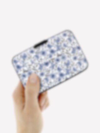 Vit korthållare Stockholm från Ögon tillverkad i aluminium. Snyggt fodral med blått blom-mönster. Fodralet har många fack med plats för 12 kort och dessutom för pengar och annat. Plånböckerna är RFID-skyddade vilket innebär att de är skimnings-säkra. Tjuven kan inte läsa av alla dina kort genom att bara gå bredvid. Dessutom är de vatten-, sand- och snötäta, plånboken kan följa med överallt!