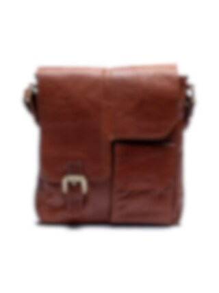 Springfield - Brun axelremsväska i skinn