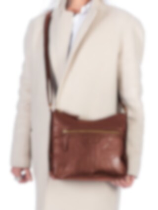 Springfield - Brun axelremsväska i skinn