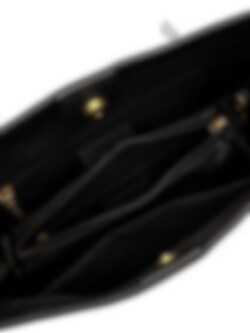 Invändigt finns textilfoder, en ficka med dragkedja samt ett öppet fack. Det som gör modellen extra smart är den mindre innerväskan - som kan användas separat eller fästas i den större.