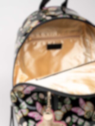 Cool ryggsäck med en glittriga dekorativa fjärilar i guldfärg, rosa och grönt och en tassel fjärlil som detalj. Passar för barn både till skolan och till vardags. Ryggsäcken har tre fickor samt rymliga fack inuti.