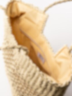 Naturfärgad stråväska som är gjord för en härlig sommardag i parken eller på stranden. Väskan har ett stort fack som stängs med dragkedja och ett litet fack för småsaker. Innerfoder i textil.